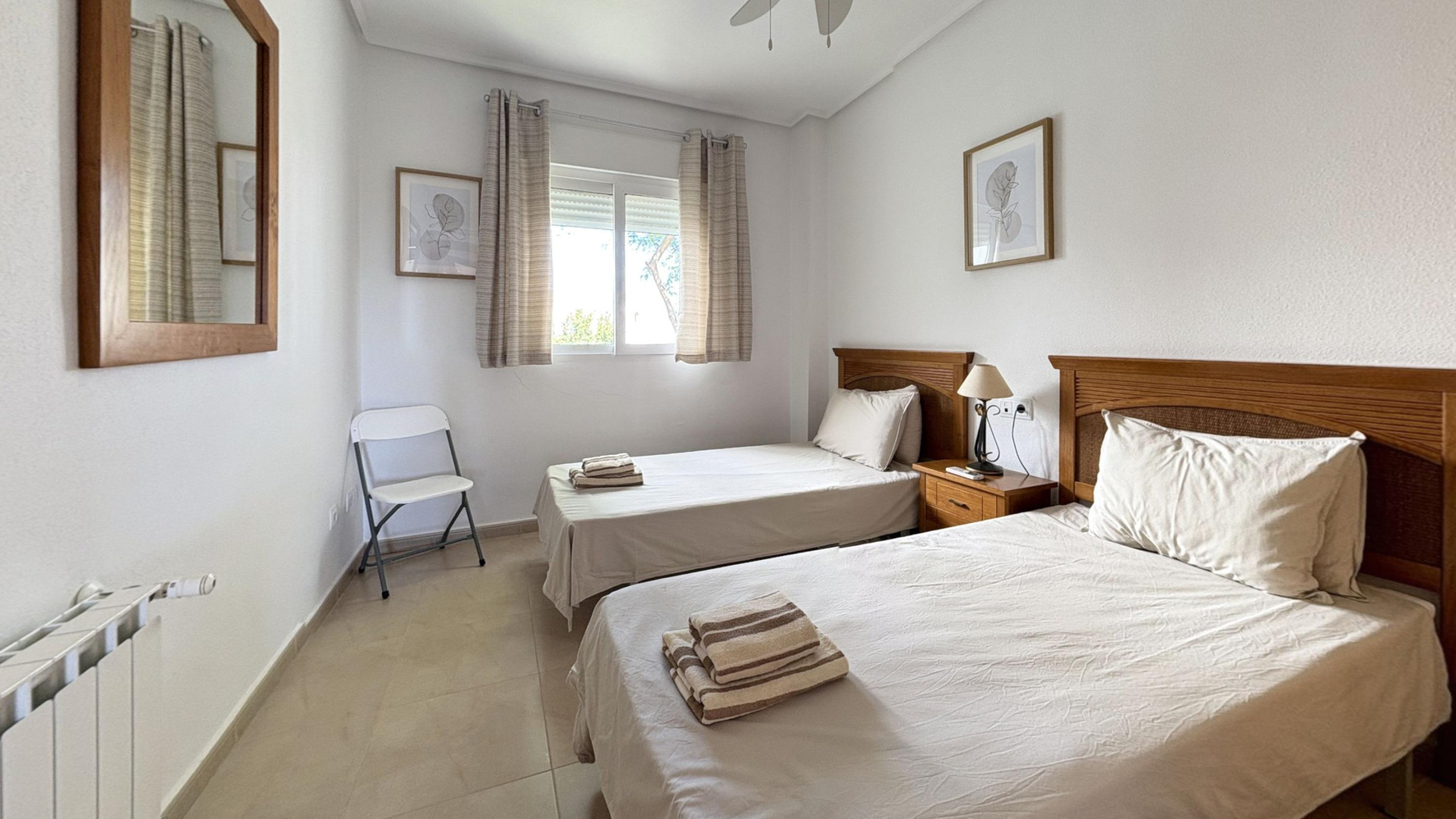 El apartamento se encuentra en un resort de golf de 5 estrellas. Disponemos de varios restaurantes (indio, italiano, parrilla, bares, supermercado, campo de golf, pista de tenis (equipamiento incluido), pista de pádel (equipamiento incluido), campo de fútbol, zonas de juegos infantiles y piscinas comunitarias. Disponemos de aire acondicionado en todas las habitaciones y en el salón. También disponemos de plaza de aparcamiento subterráneo privado. Se proporciona menaje de cocina, lavadora, lavavajillas, toallas, ropa de cama, TV con Chromecast y wifi.