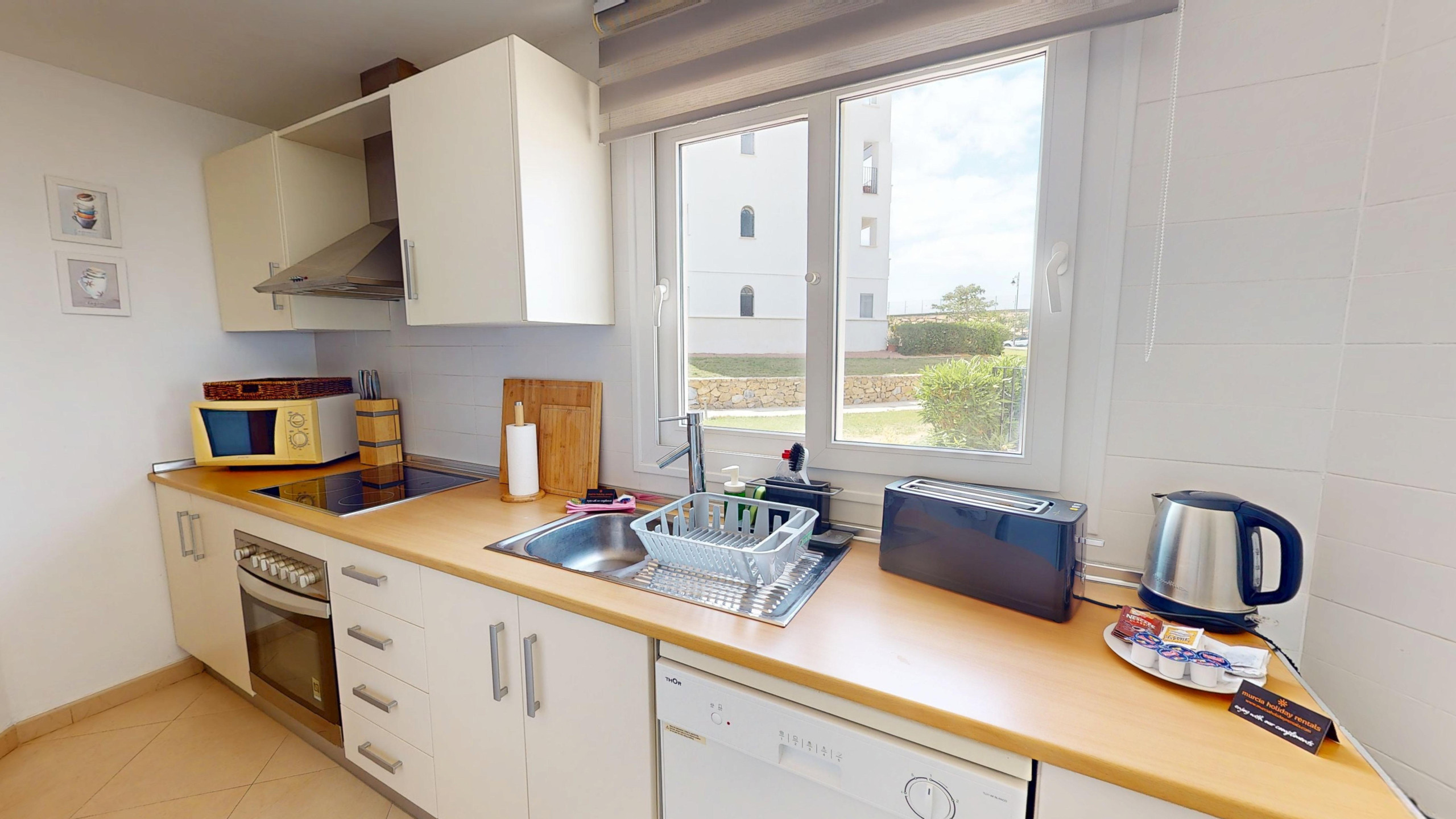 La cocina está equipada con frigorífico, microondas, horno, congelador, lavavajillas, vajilla/cubertería, utensilios de cocina, tostadora y hervidor.