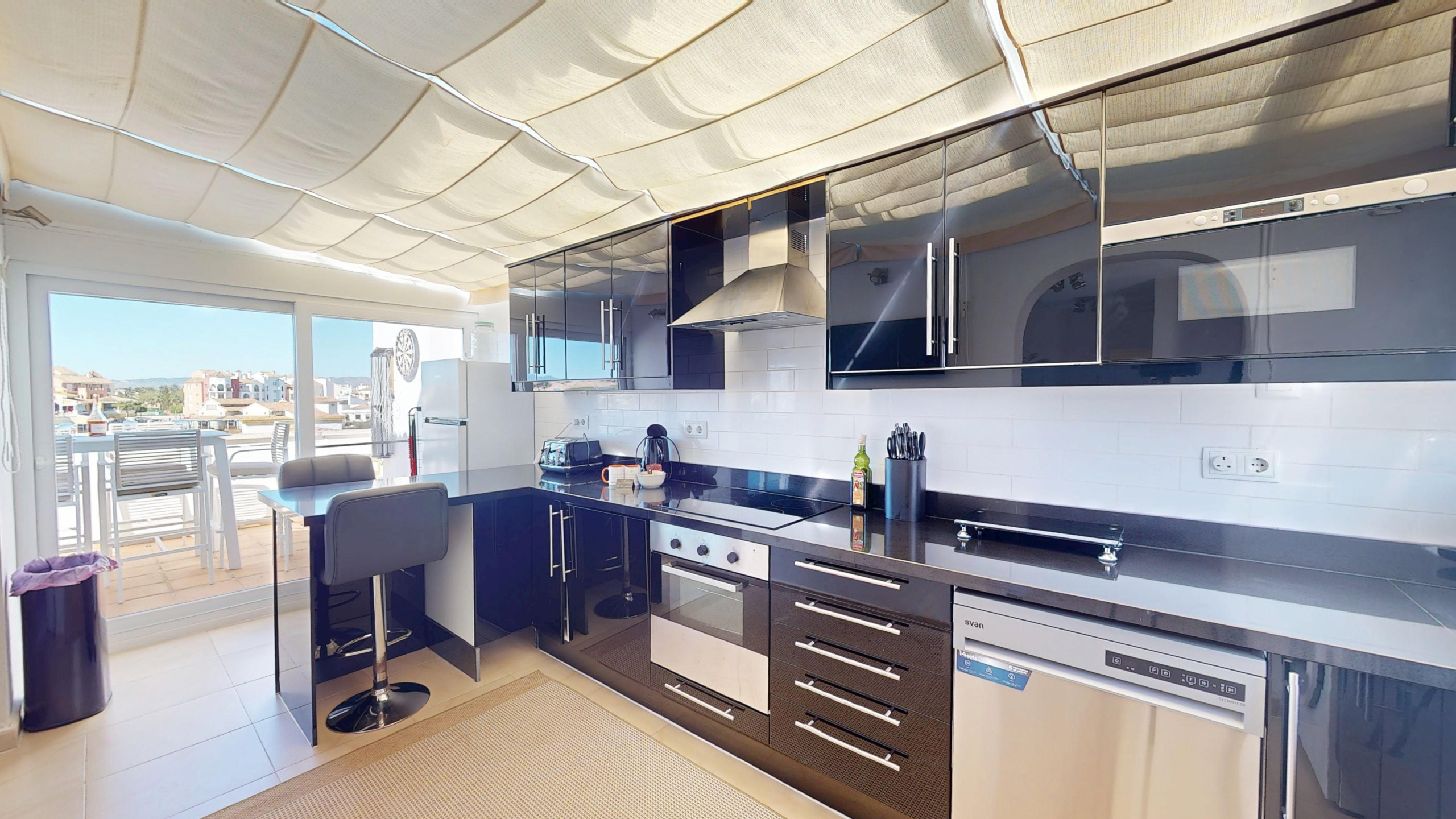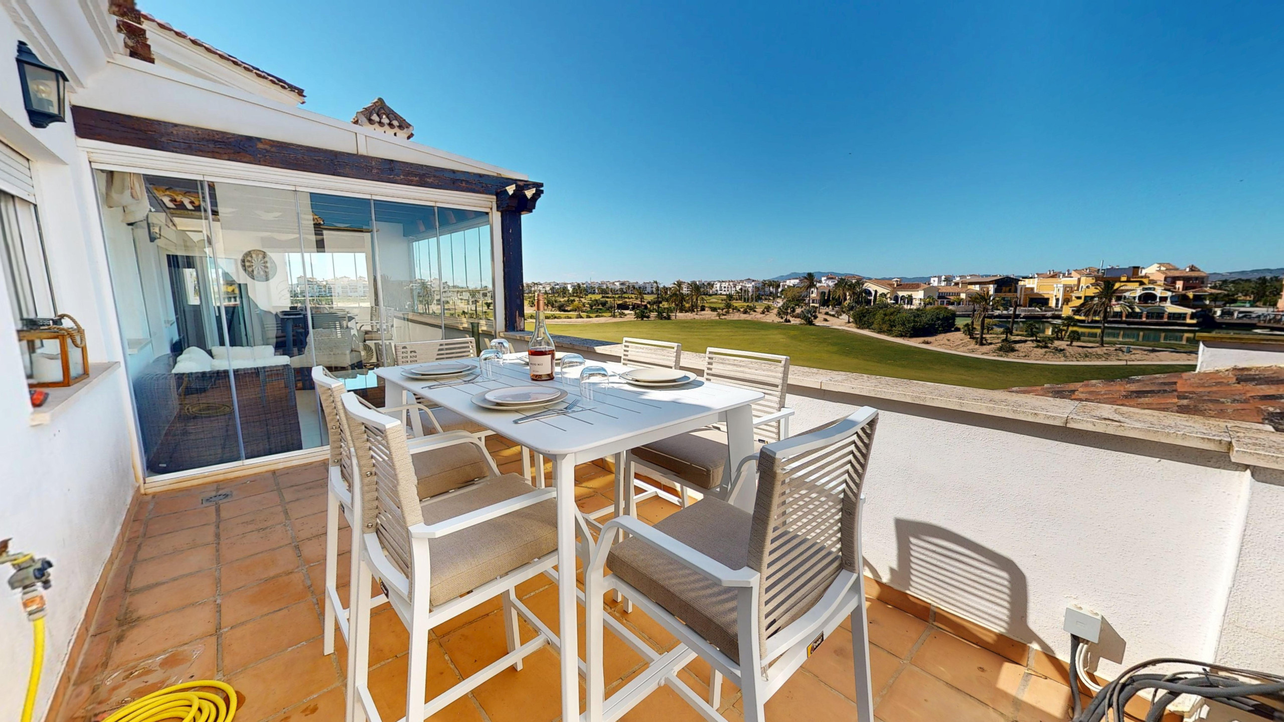 Ático de 2 dormitorios con terraza acristalada y terraza exterior que muestra impresionantes vistas al campo de golf de primera línea. Zona de cocina ampliada también.