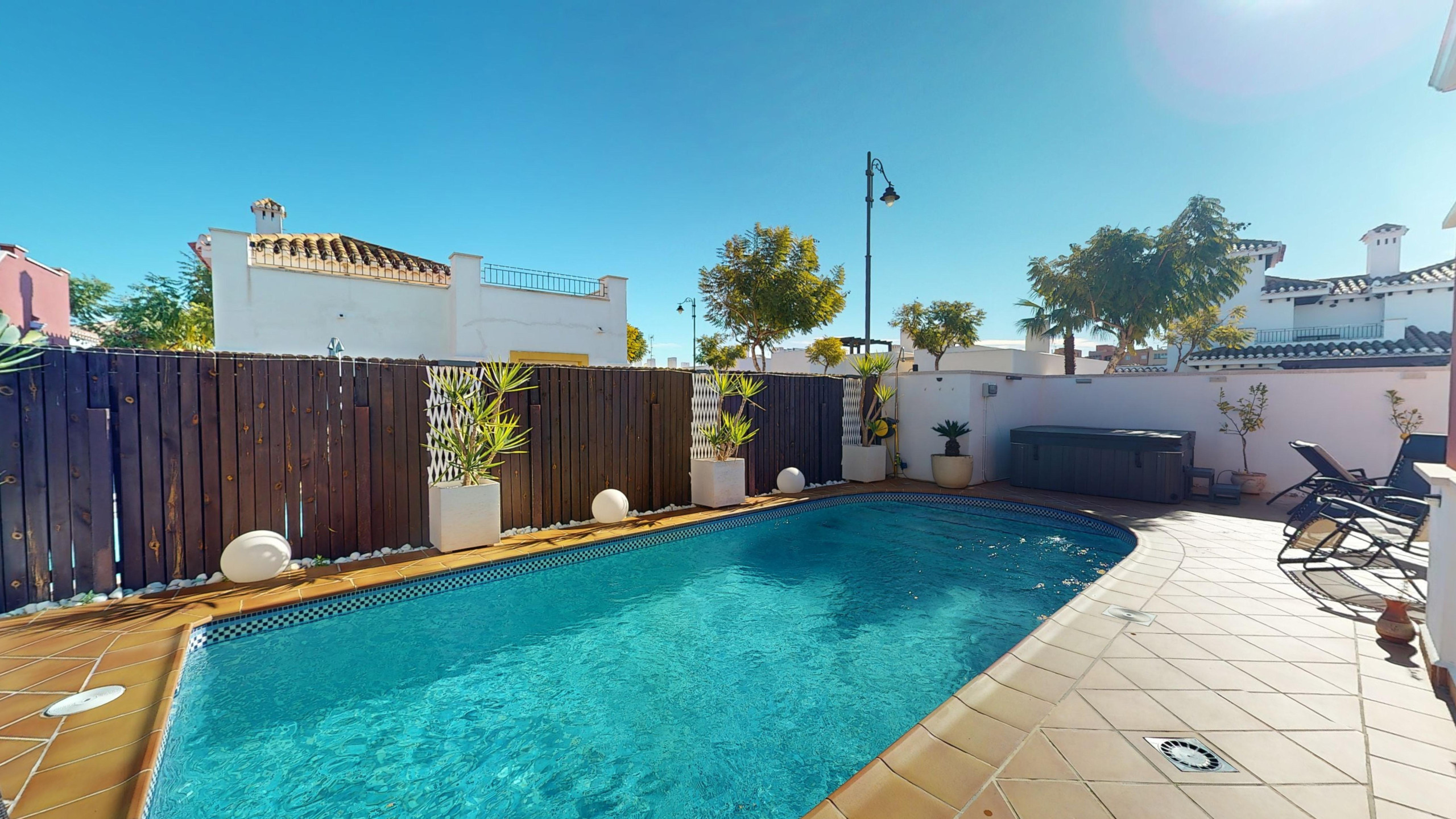 Fabulosa villa de 2 dormitorios y 2 baños con piscina privada climatizada y jardín. ¡La terraza soleada con espacio para tomar el sol es justo lo que necesita para relajarse y descansar! Esta propiedad también tiene un jacuzzi para agregar a los beneficios.