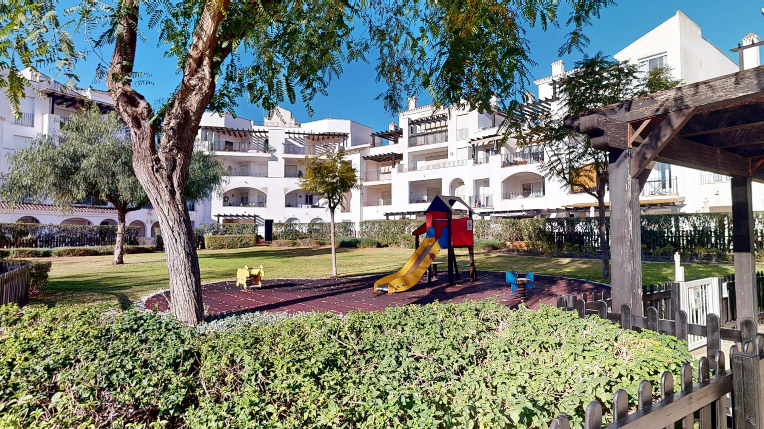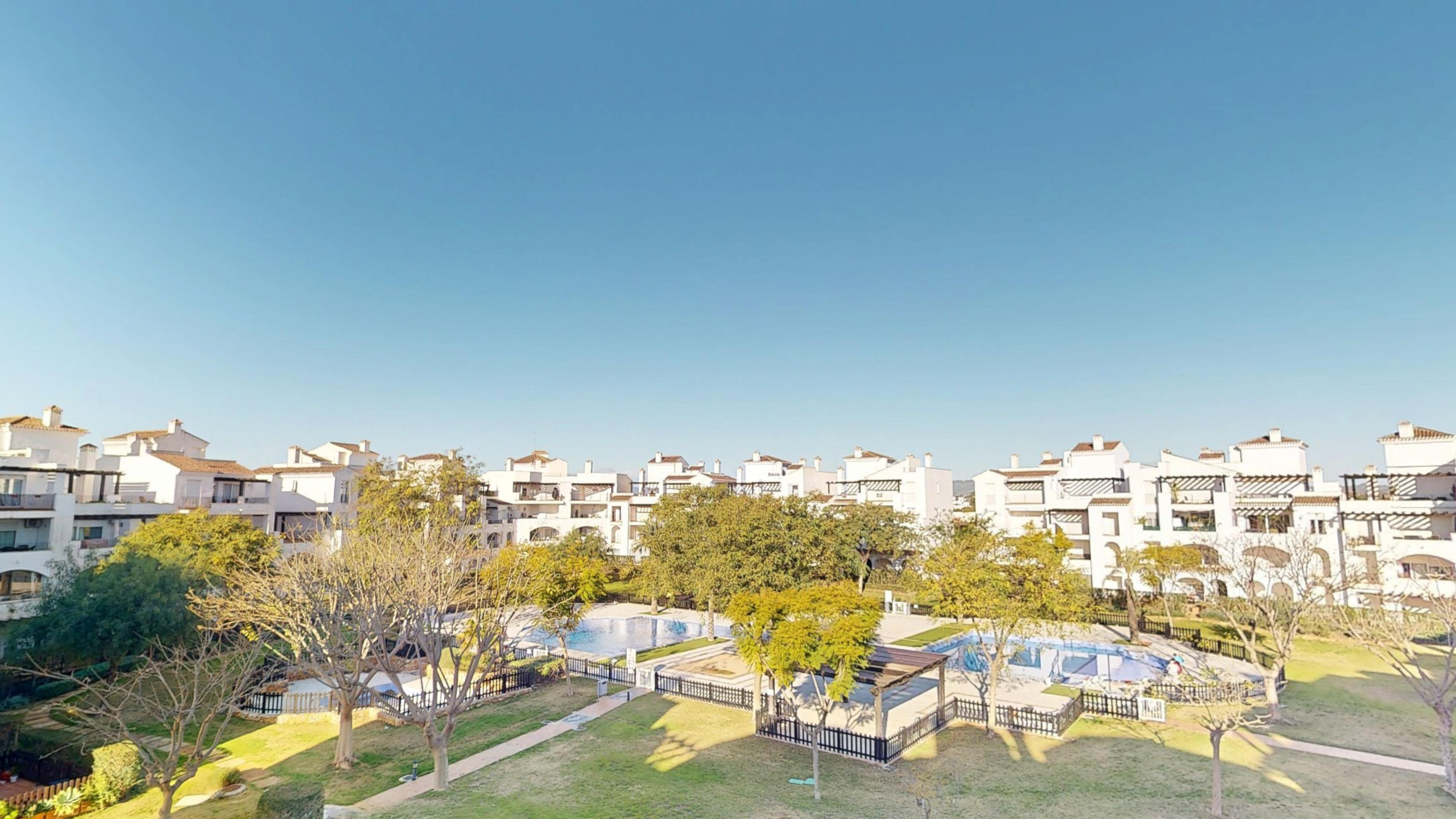 El complejo está muy bien comunicado y a tan solo 15 minutos de la playa y del aeropuerto internacional de Murcia Corvera