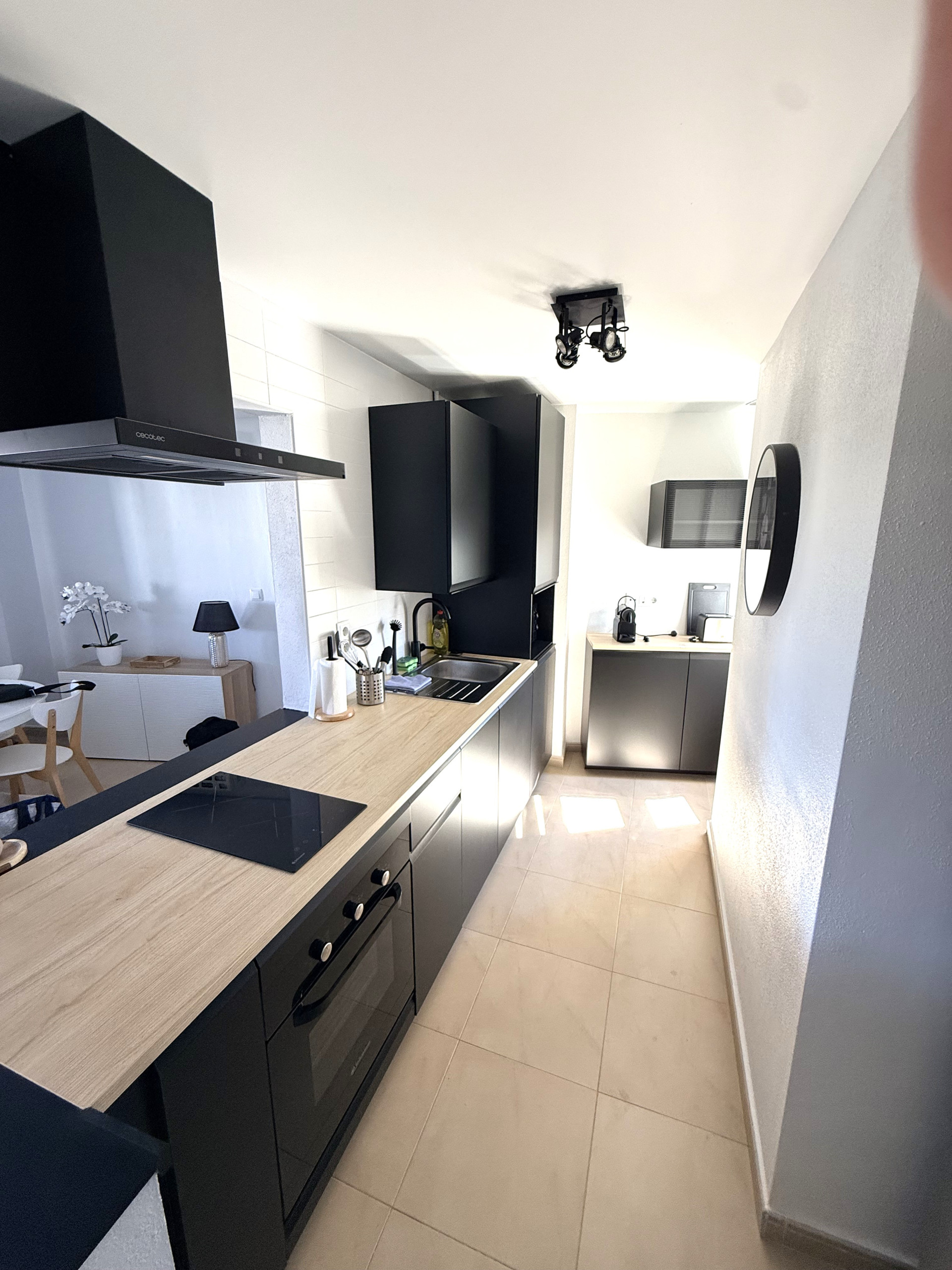 Dispone de cocina independiente totalmente equipada con lavavajillas, lavadora, cafetera, tostadora…