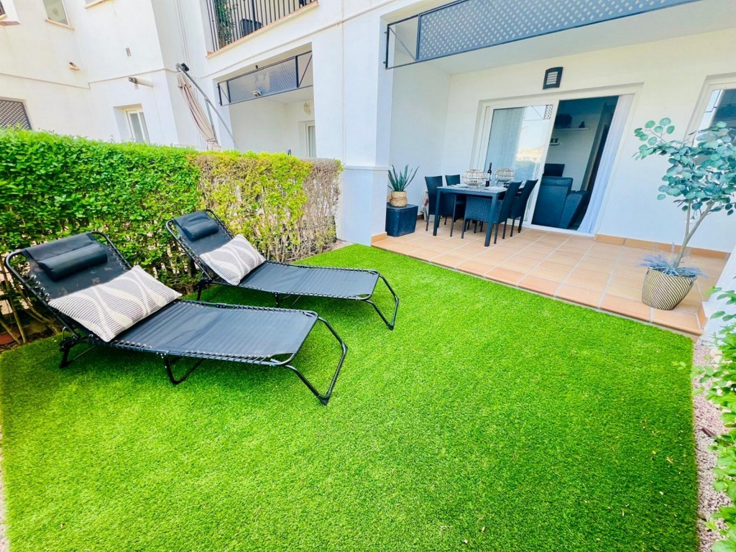 Apartamento de 2 dormitorios con orientación oeste, con capacidad para 4 personas y ubicado en primera línea de campo de golf, con vistas al jardín y al campo.