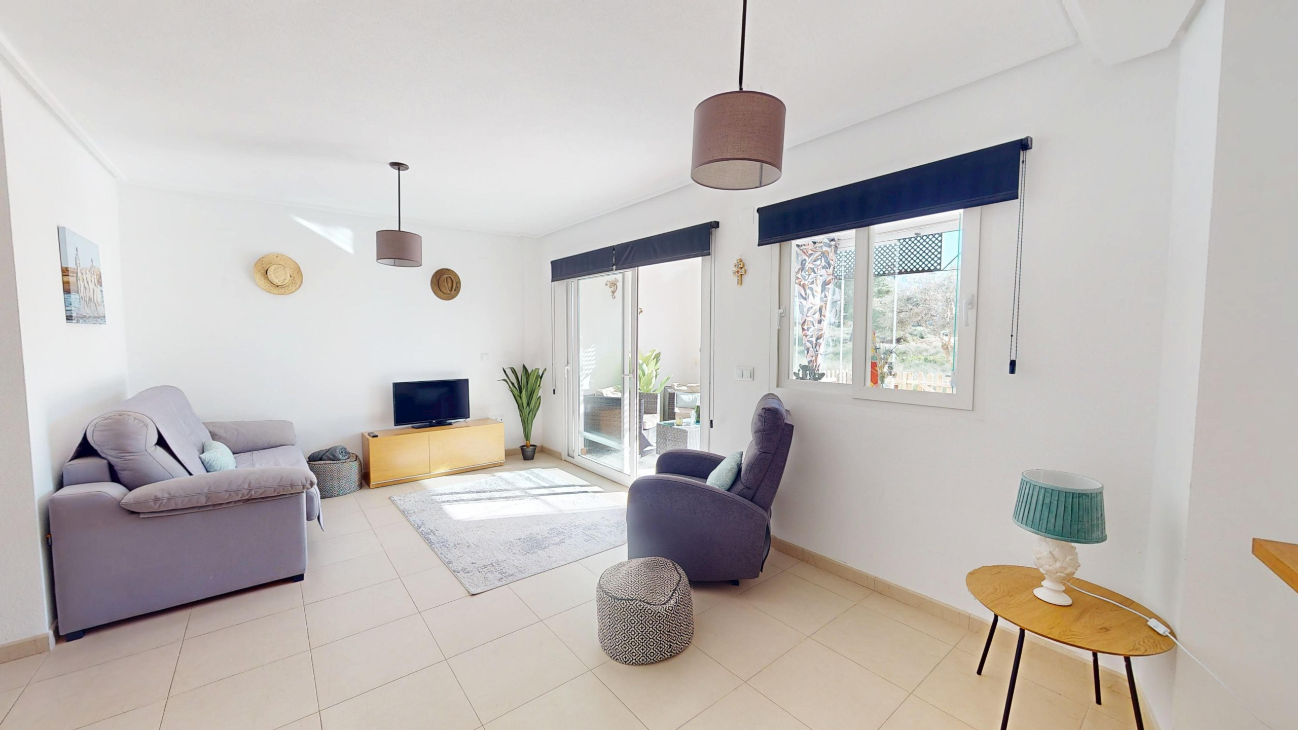 Apartamento moderno de dos dormitorios con cortinas de vidrio y terraza completamente alicatada. Da a la tercera calle del campo de golf y es un paseo fácil hasta la piscina tranquila, ya que está a solo una manzana de distancia. Orientación sur.