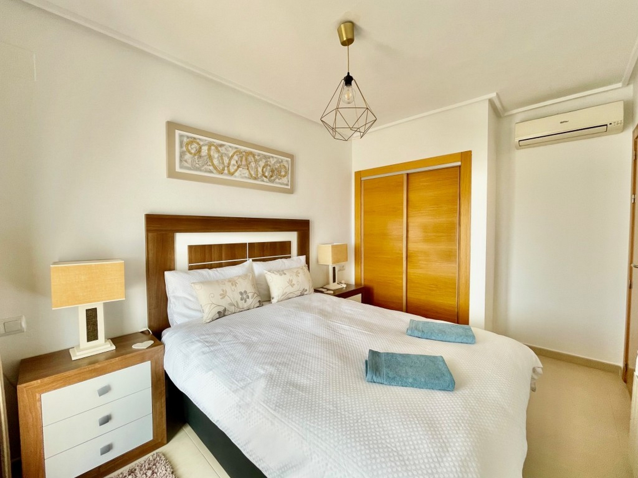 El alojamiento tiene: muebles de jardín, terraza, lavadora, plancha, internet (Wi-Fi), zona infantil, pista de tenis, pista de pádel, calefacción central, aire acondicionado en la sala de estar, piscinas comunitarias, espacio de garaje y amplio aparcamiento en el sitio, TV/TV por satélite (Idiomas: español, inglés, alemán, francés).