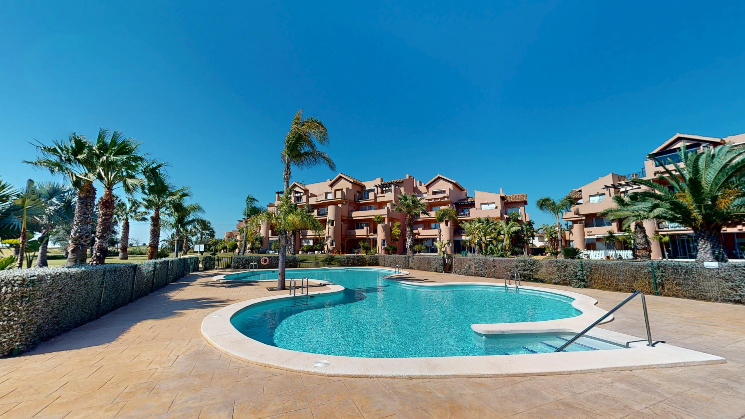 Dentro del Mar Menor Golf Resort, también encontrarás Club MMGR donde puedes pagar una pequeña tarifa diaria para acceder a las instalaciones, incluyendo piscina climatizada, pistas de pádel y tenis, minigolf y un gimnasio. ¡Esta tarifa solo se aplica desde mediados de septiembre hasta finales de marzo!