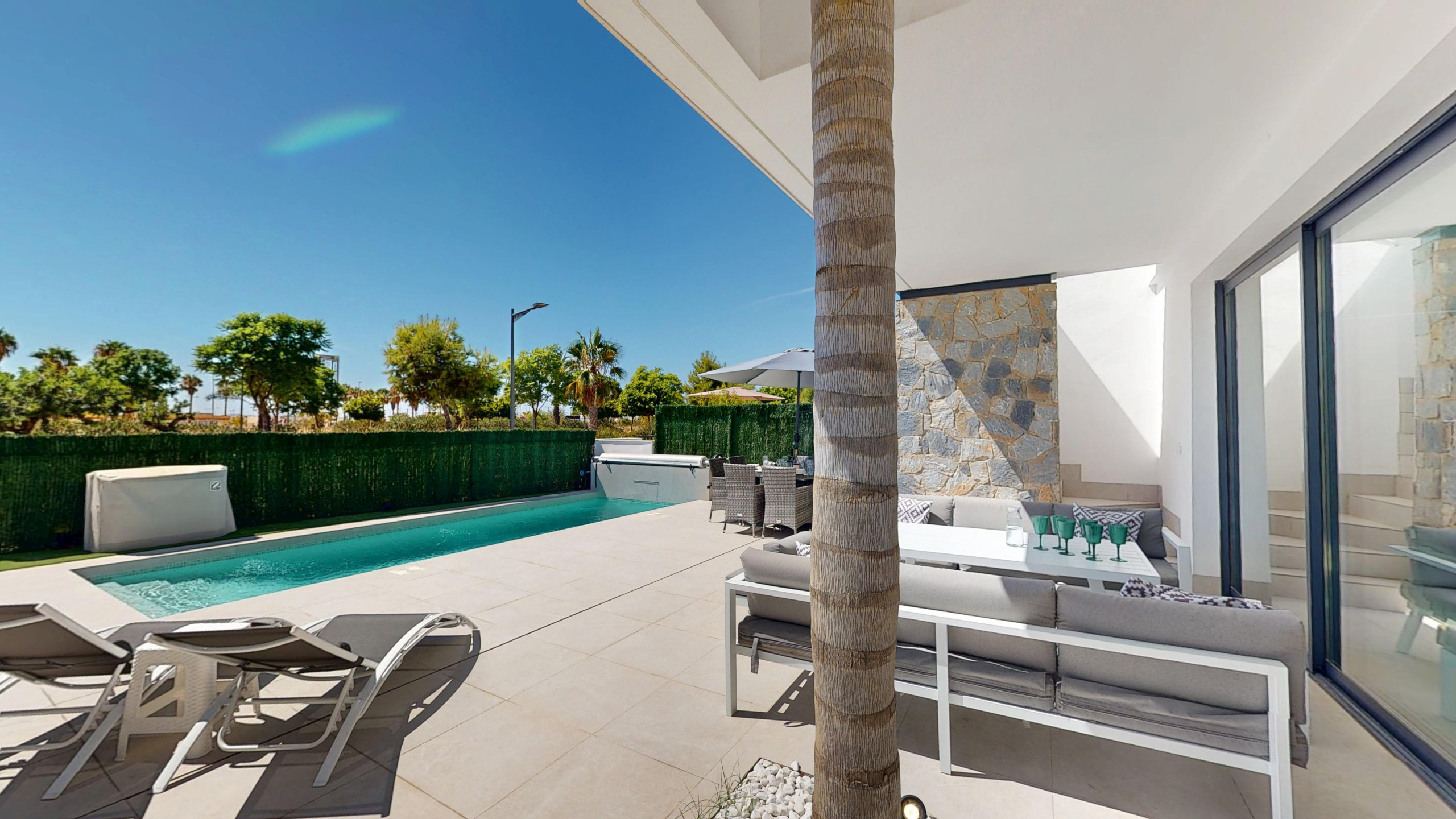 Lujosa villa de 5 dormitorios y 3 baños en el nuevo Santa Rosalia Lake and Life Resort. Distribuida en 2 plantas, la planta superior cuenta con cocina completa y la planta baja con zona de aperitivos. Terraza en la azotea con zona de estar y relax.