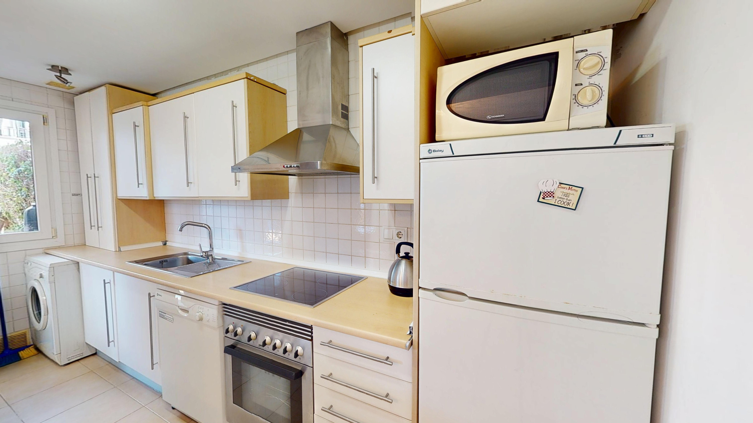 Tiene una cocina amplia y totalmente equipada, incluyendo lavadora y lavavajillas. También cuenta con TV inteligente, internet (WiFi), secador de pelo, sofá cama y cuna de viaje y trona.