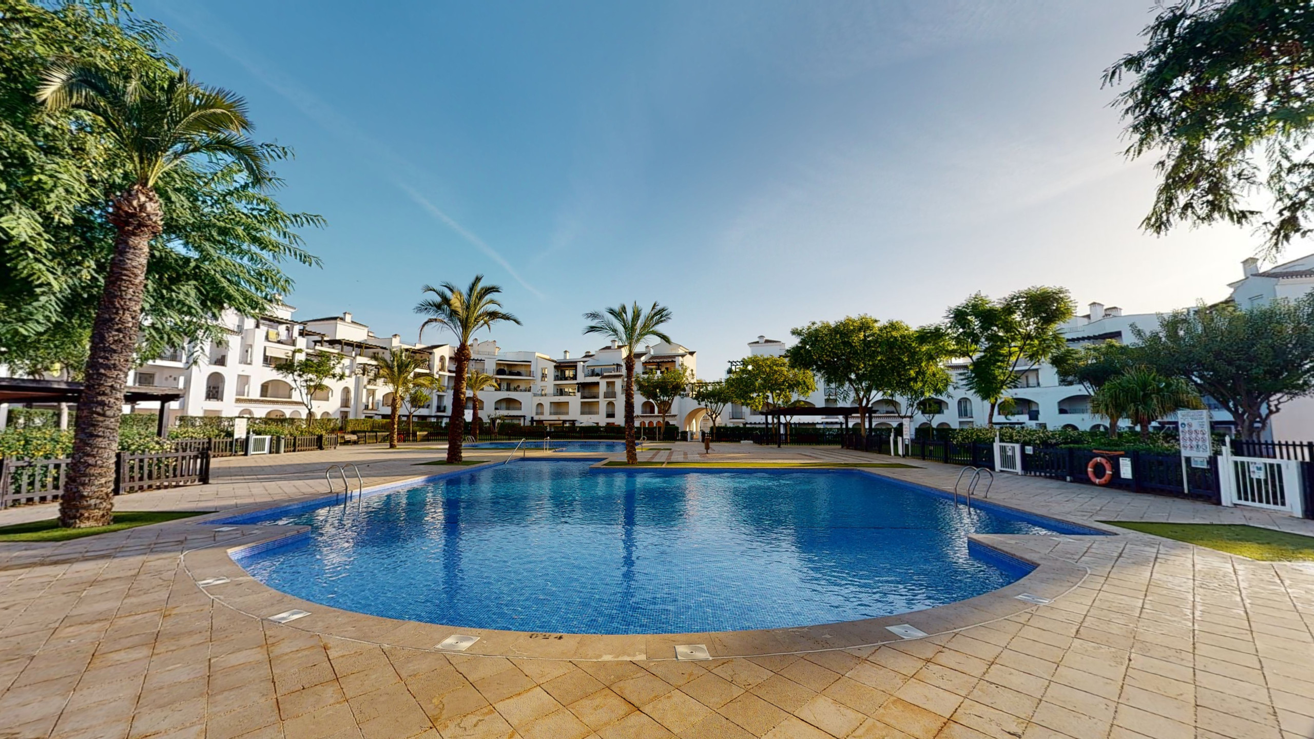 Lovely 1st floor 2 bedroom 1 bath apartment with a 2 minute walk to the Town Centre and supermarket with fab views of the swimming pool. The terrace also boasts glass curtains to give you extra room or open up to enjoy the views.
