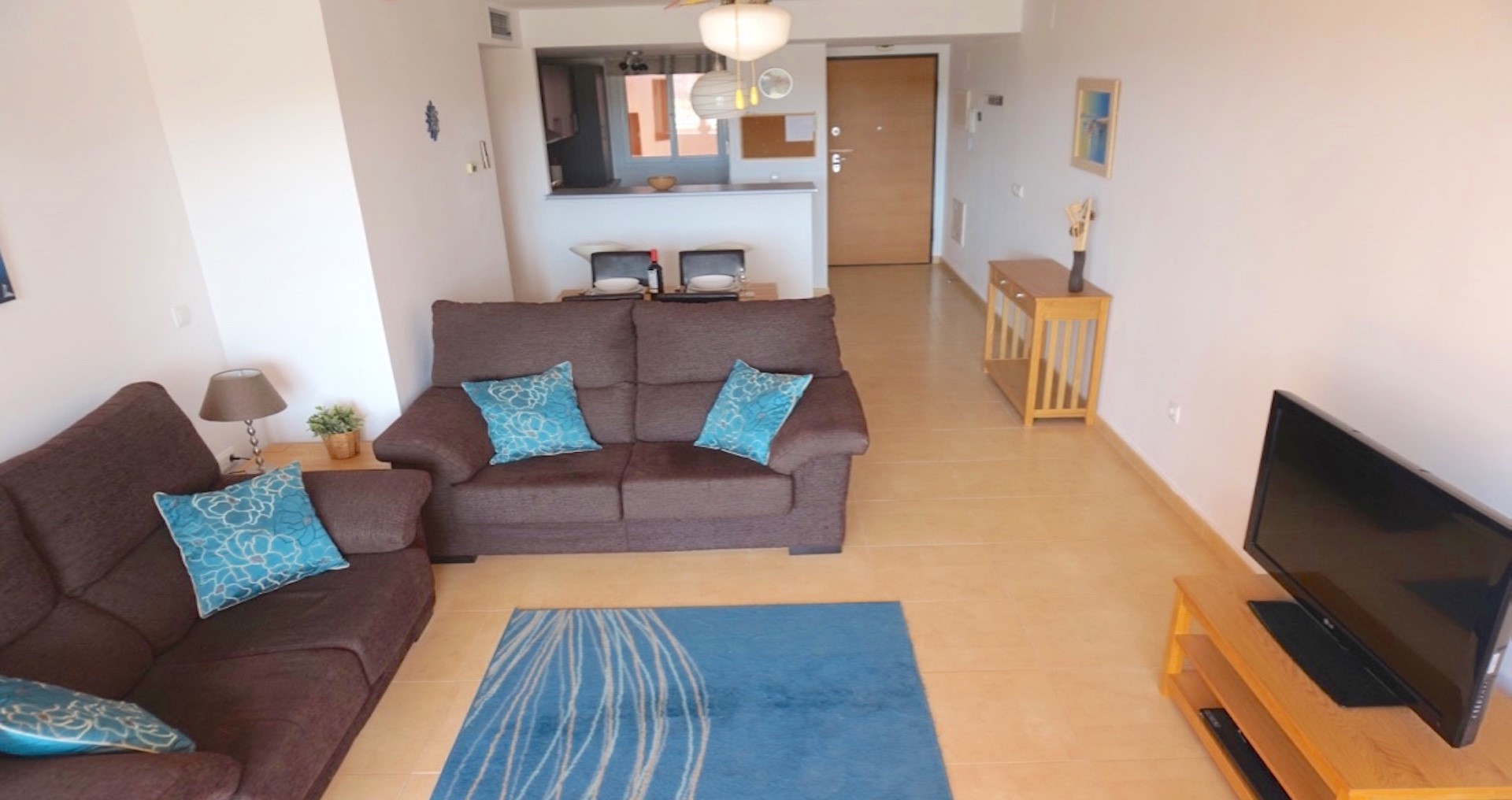 A lovely 2 bedroom apartment with views of the lake and golf course. On the wonderful 5 star Mar Menor Resort. TV with some English channels. Free Wi-Fi internet access. Fully equipped kitchen. The apartment can sleep 4 adults The master bedroom has an en-suite bath and there is a shower room.