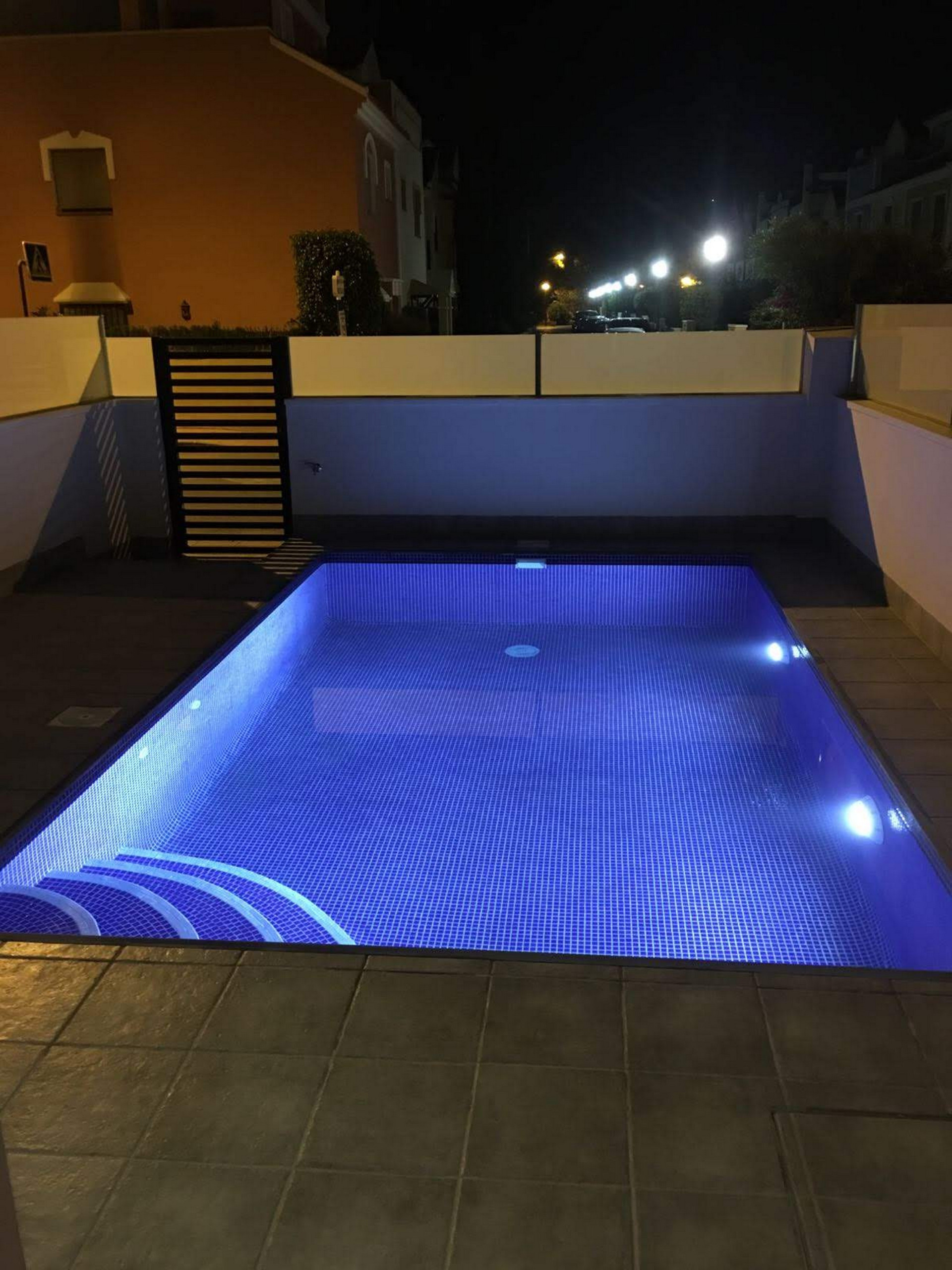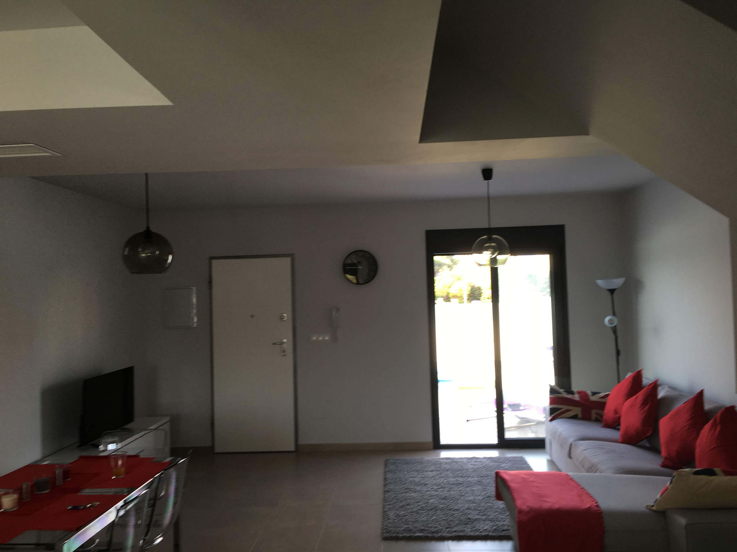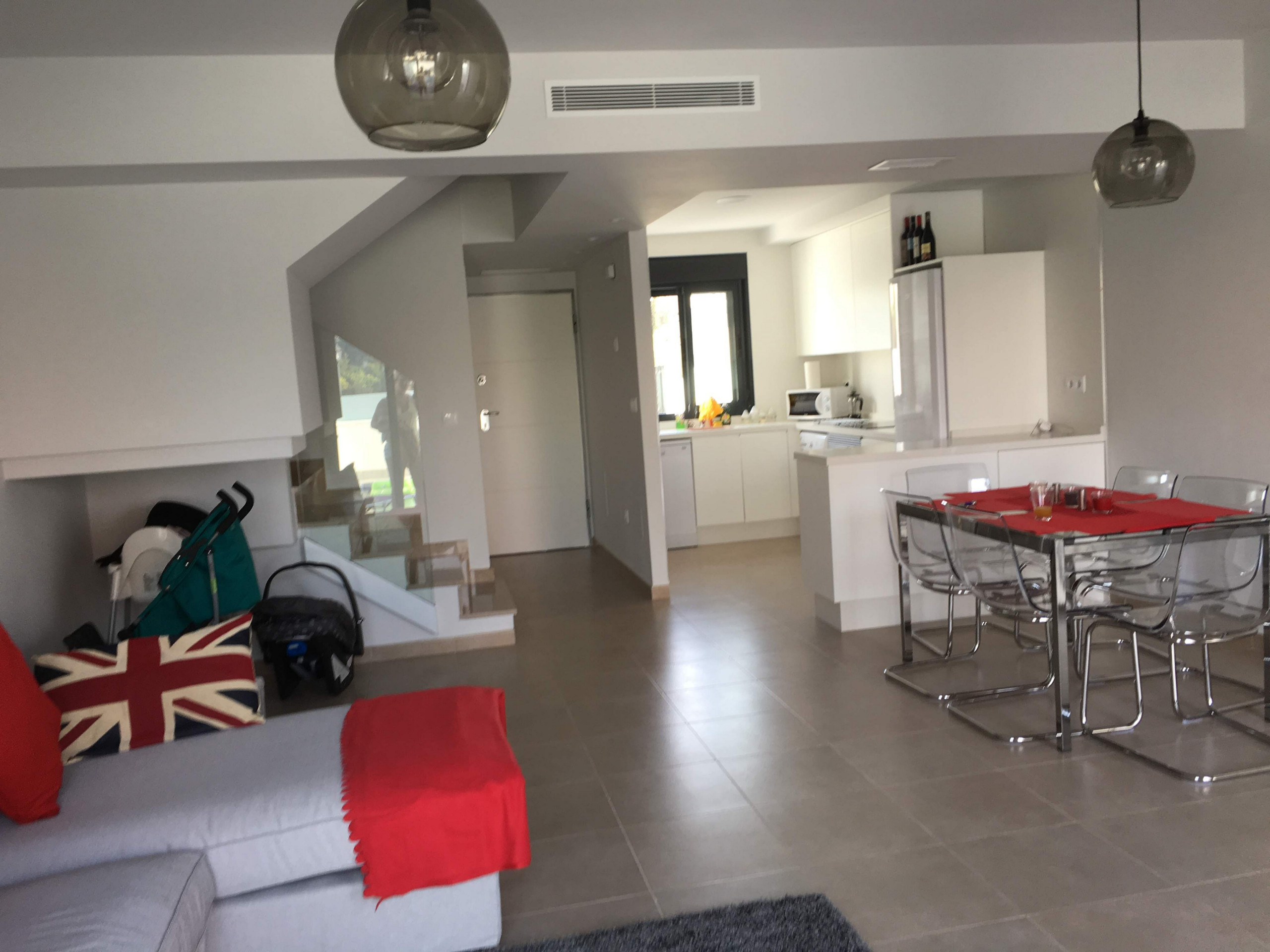 Lovely 3 bedroom house with roof terrace, rear terrace and front terrace with private pool (now has astro turf around the pool). Also has a communal pool. Very close to Roda Golf, backs on to a park so great for the kids.