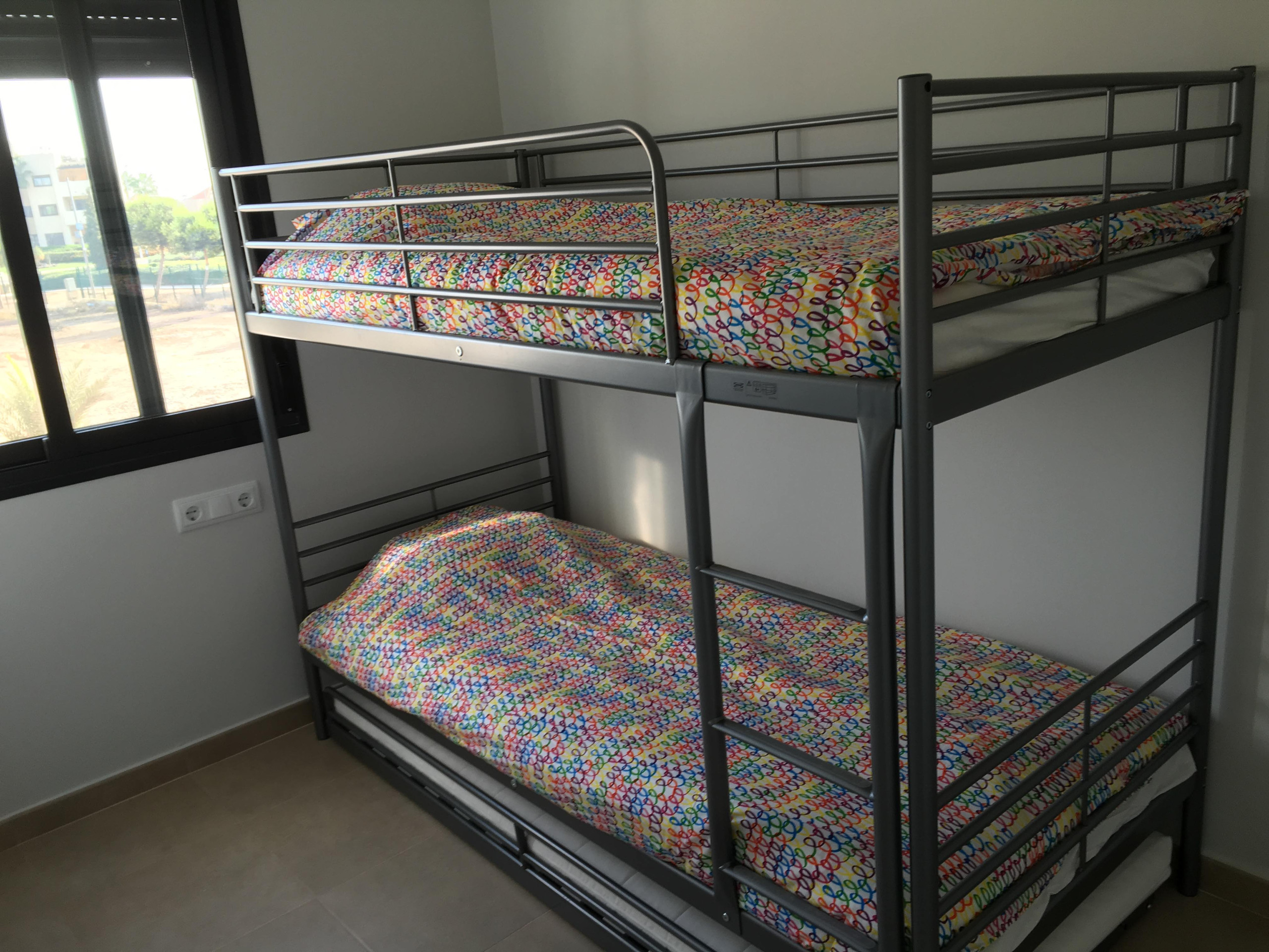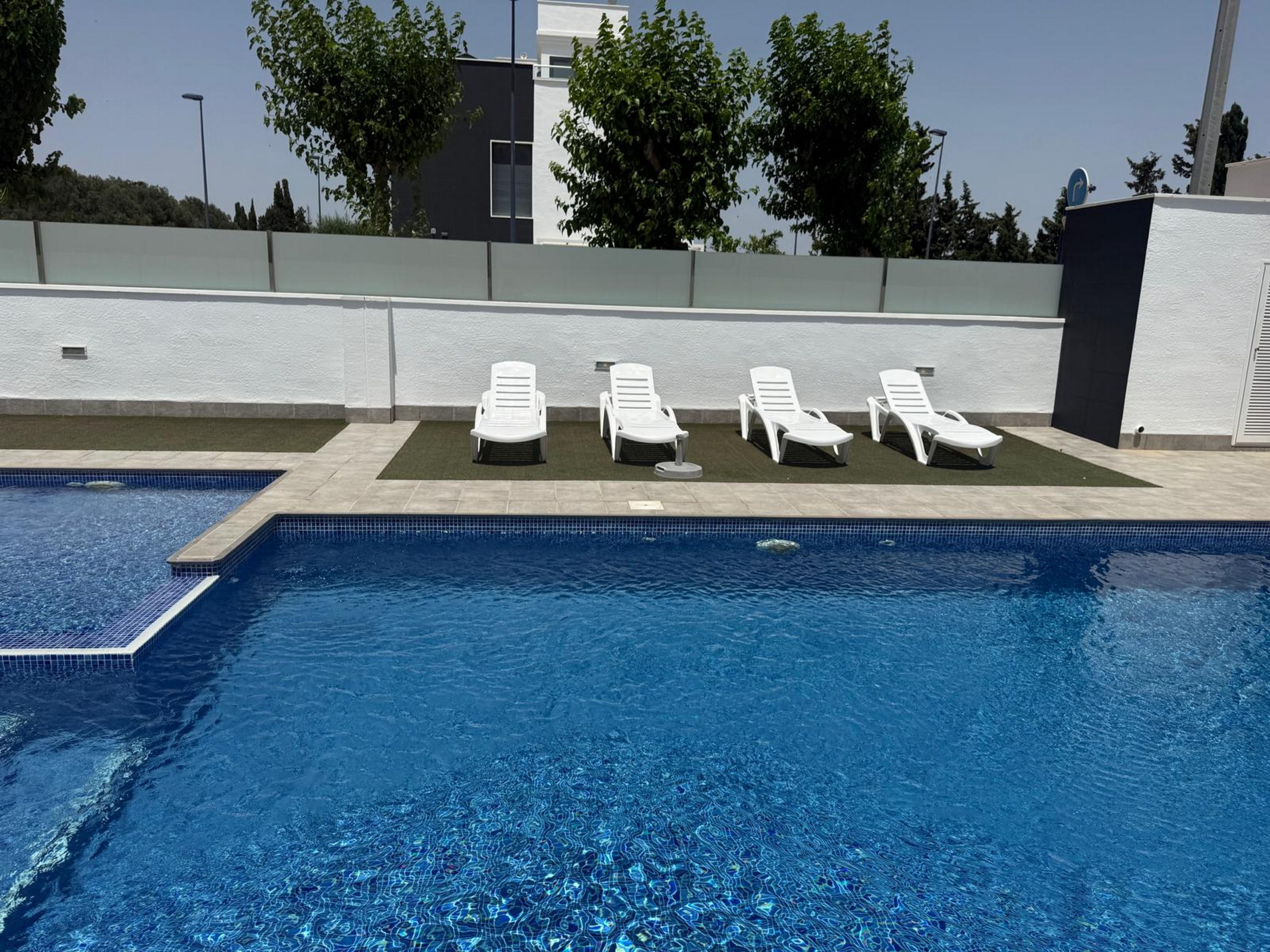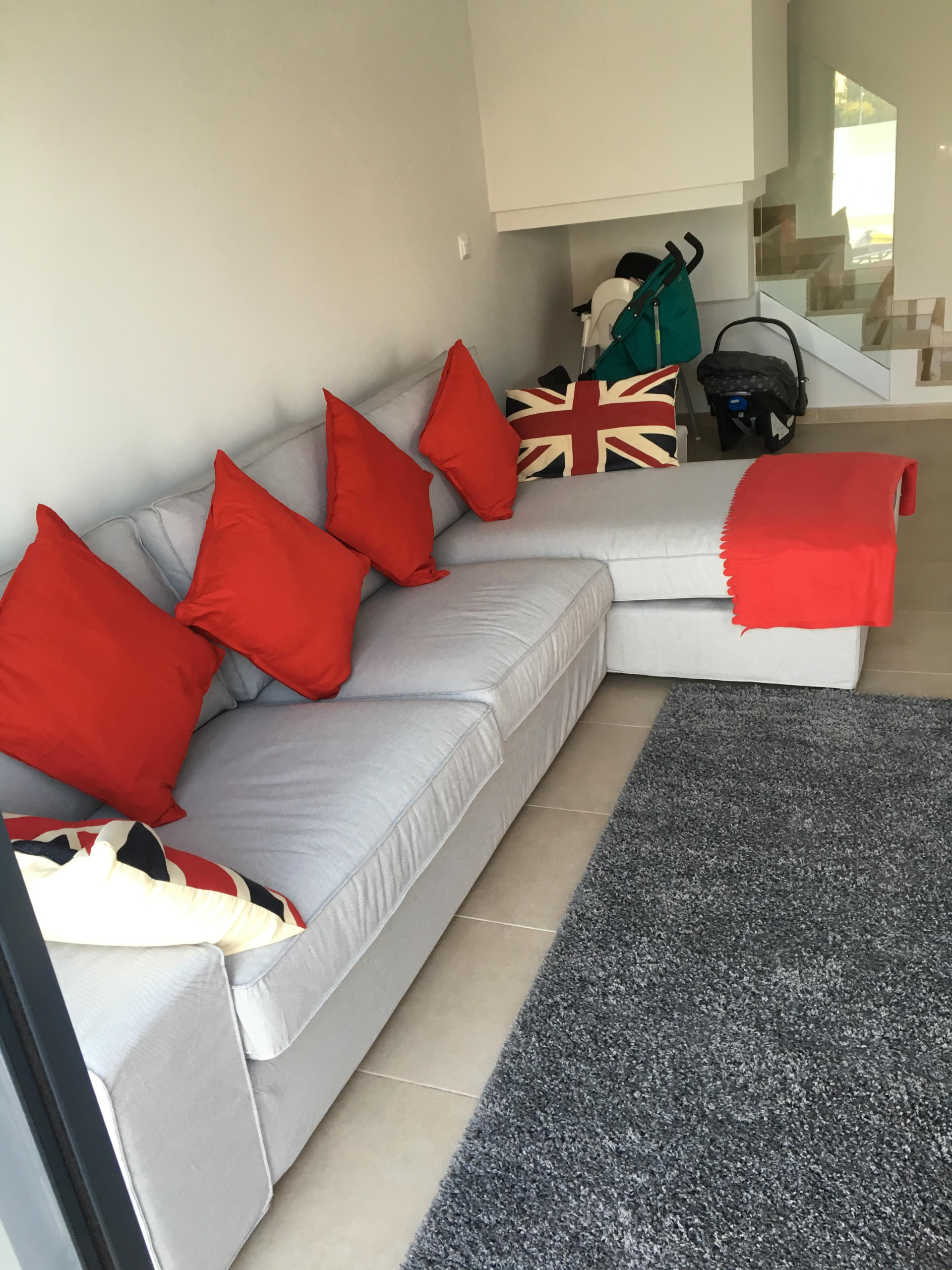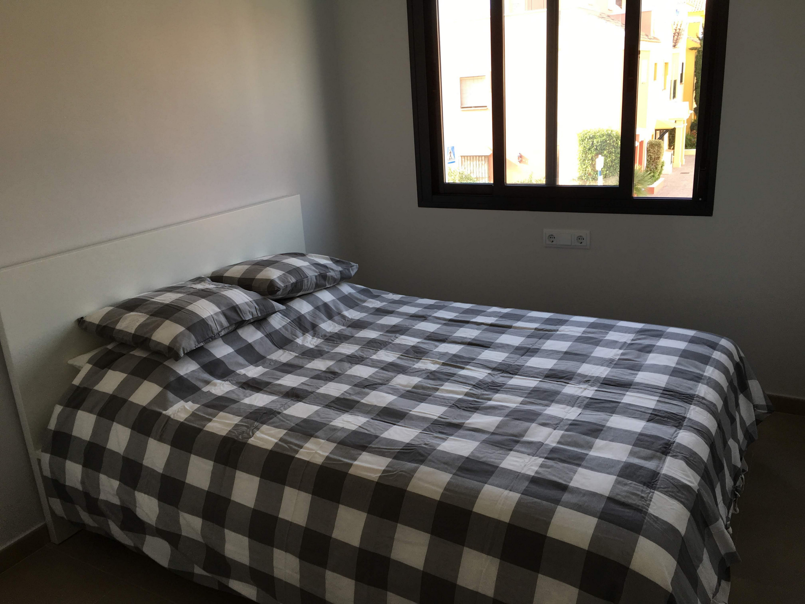 Lovely 3 bedroom house with roof terrace, rear terrace and front terrace with private pool (now has astro turf around the pool). Also has a communal pool. Very close to Roda Golf, backs on to a park so great for the kids.
