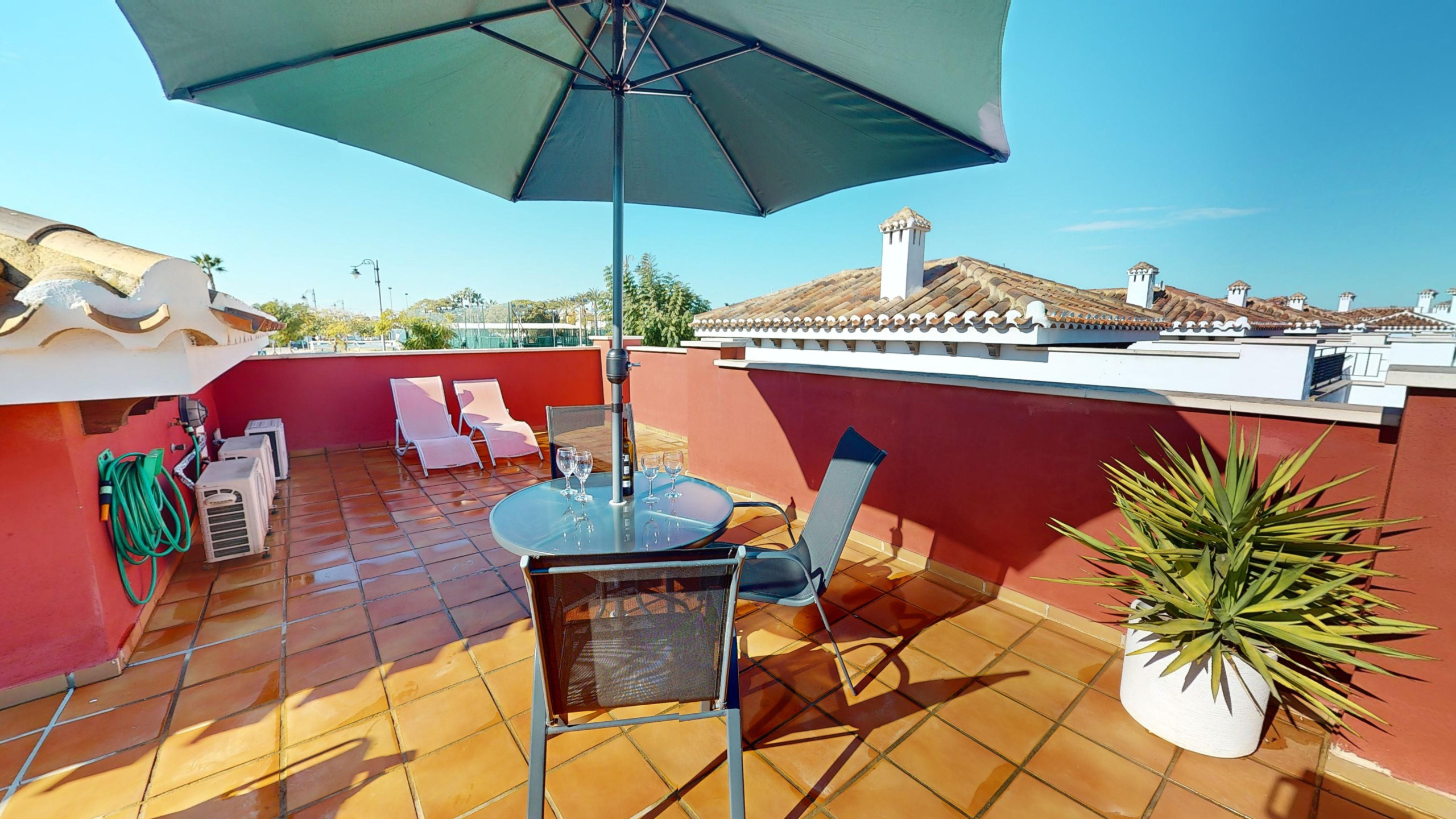 The accommodation is also fully equipped: plenty of garden furniture, fenced garden, terrace, washing machine, iron, internet (Wi-Fi), balcony, tennis court, padle court, central heating, air conditioning throughout the house, private *heated swimming pool, on site parking, TV/ IPTV (Languages: Spanish, English, German, French).