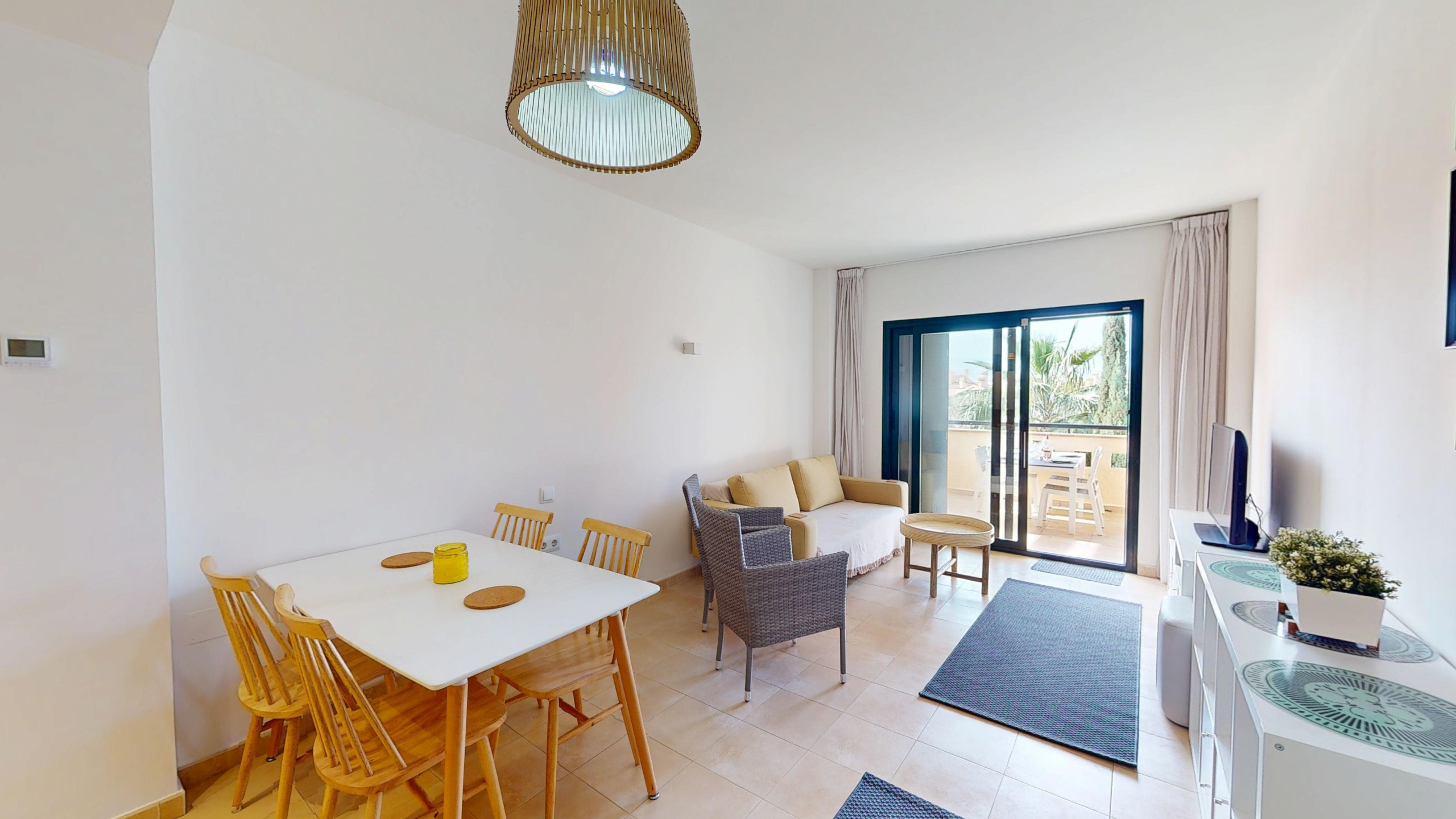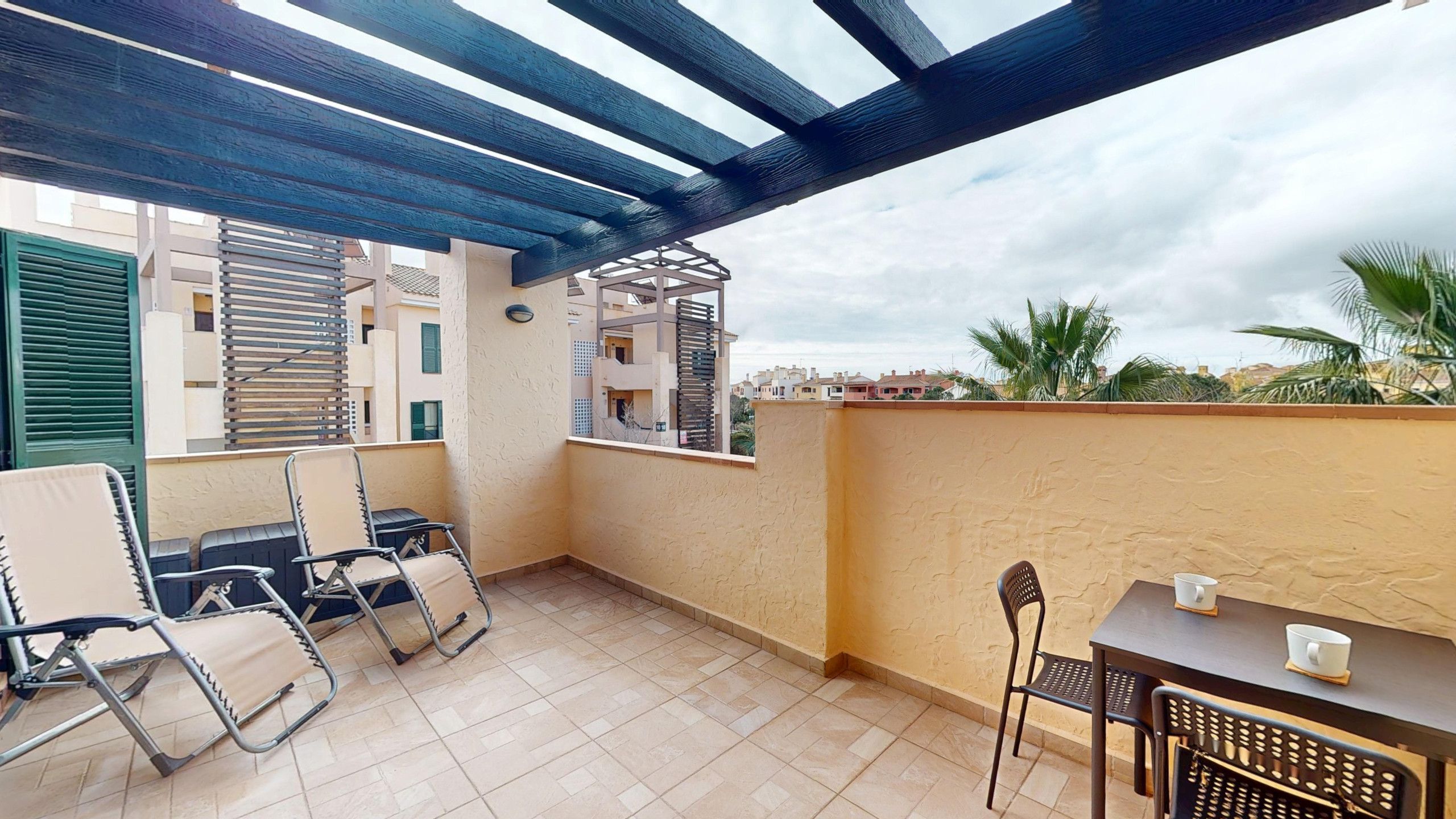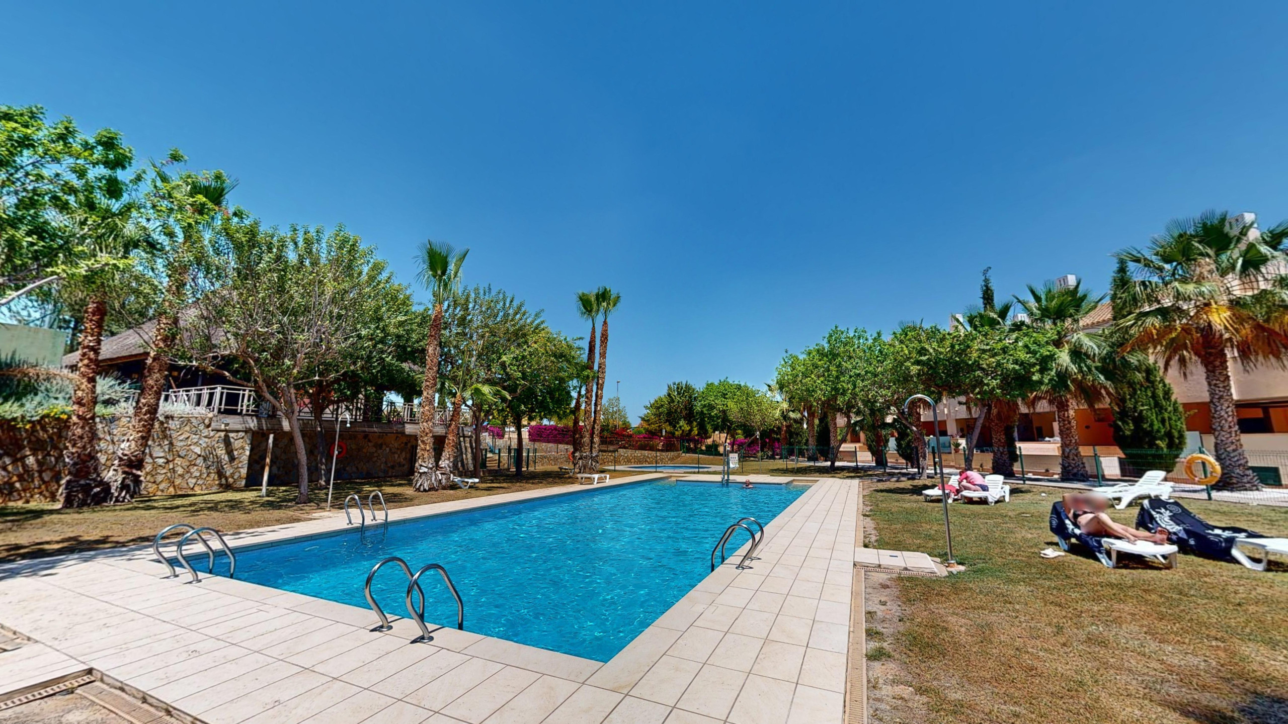 Very pleasant. Nice little swimming pool on the balcony. Nice comunity pool. Very clean apartment and with all the amenities needed. Quiet and safe. But a bit far away from the beach. Definately need a car. Very hot, but that's Spain I guess. In driving distance very nice beaches and towns. All in all very pleasant!