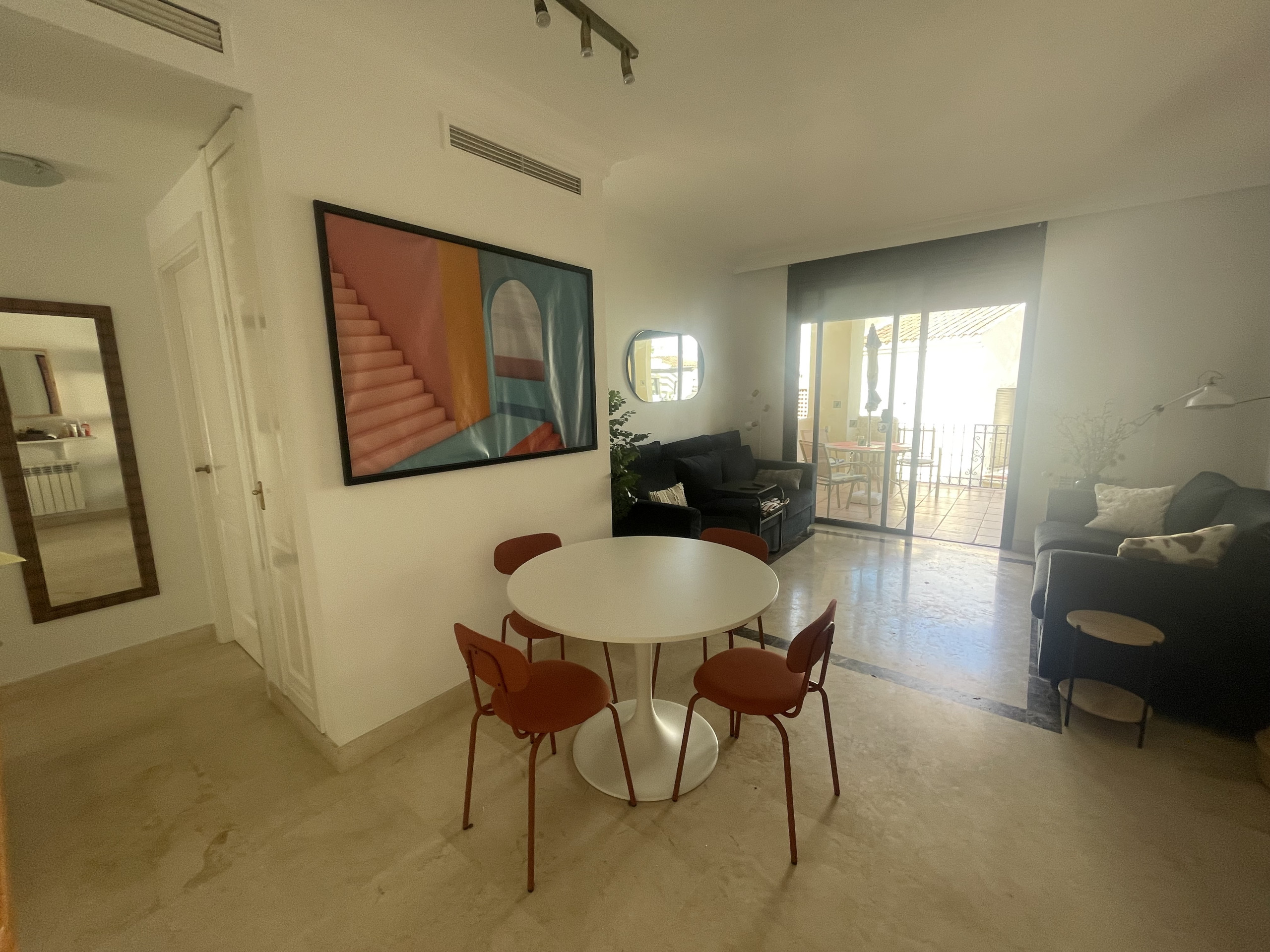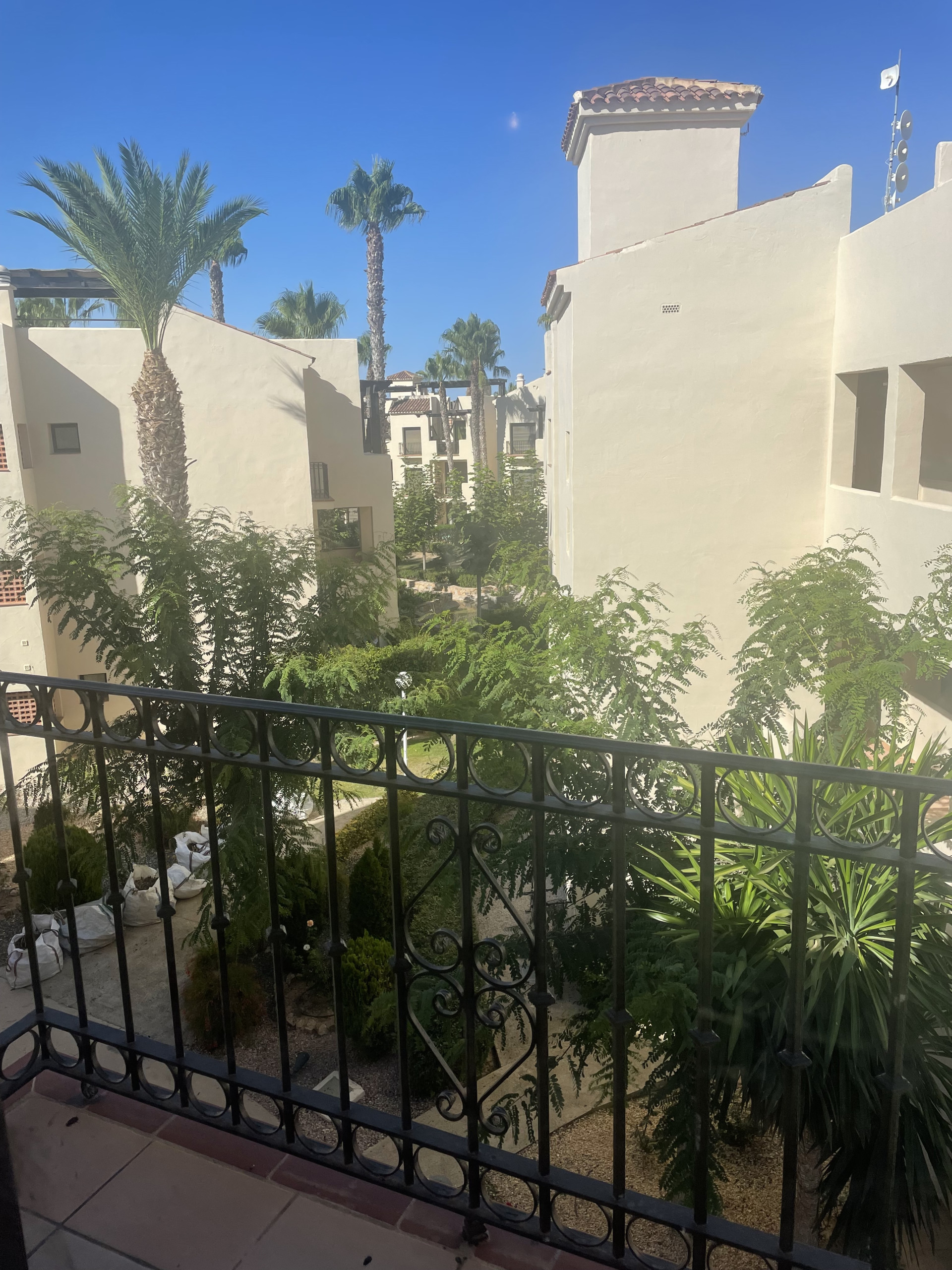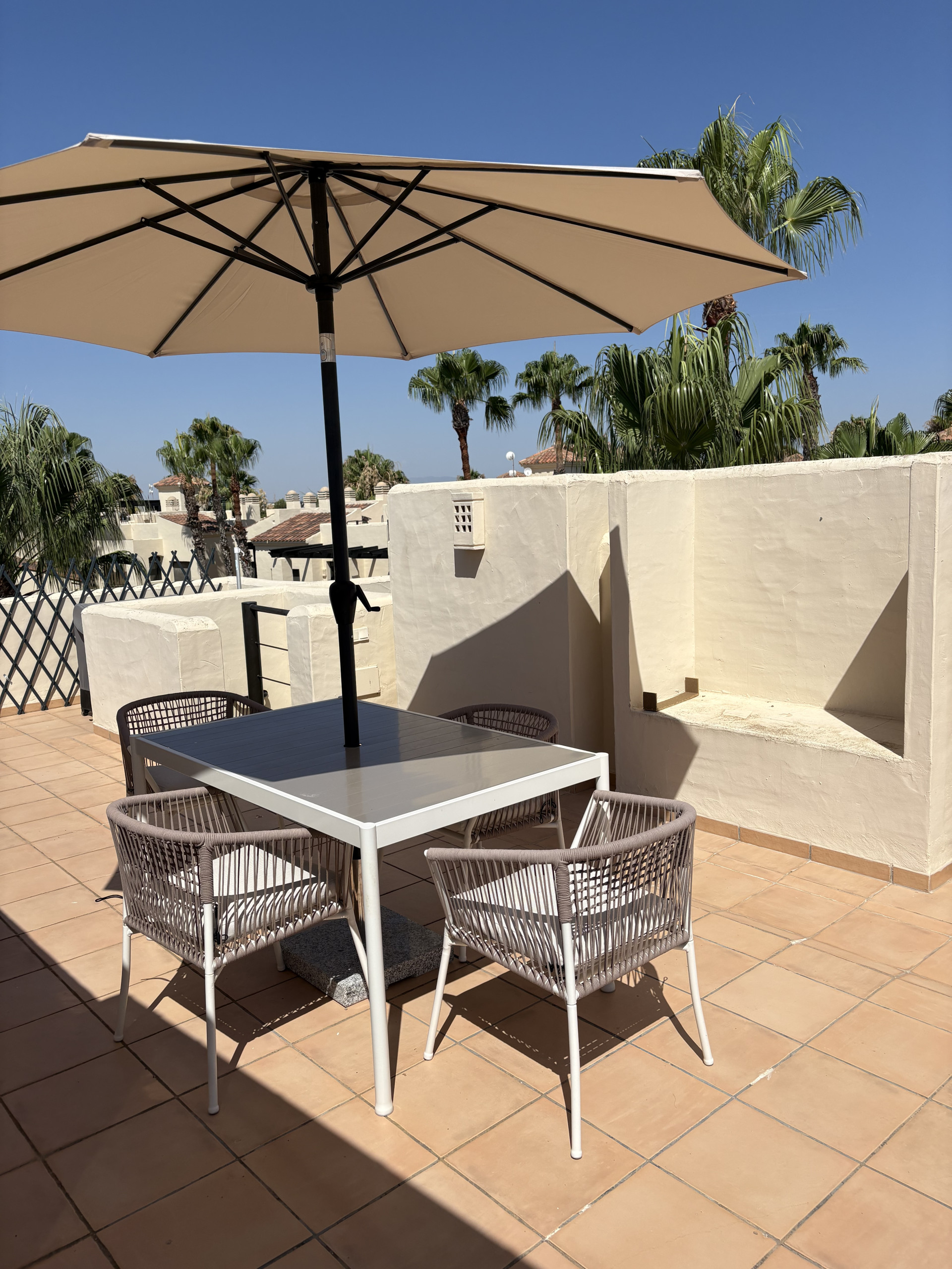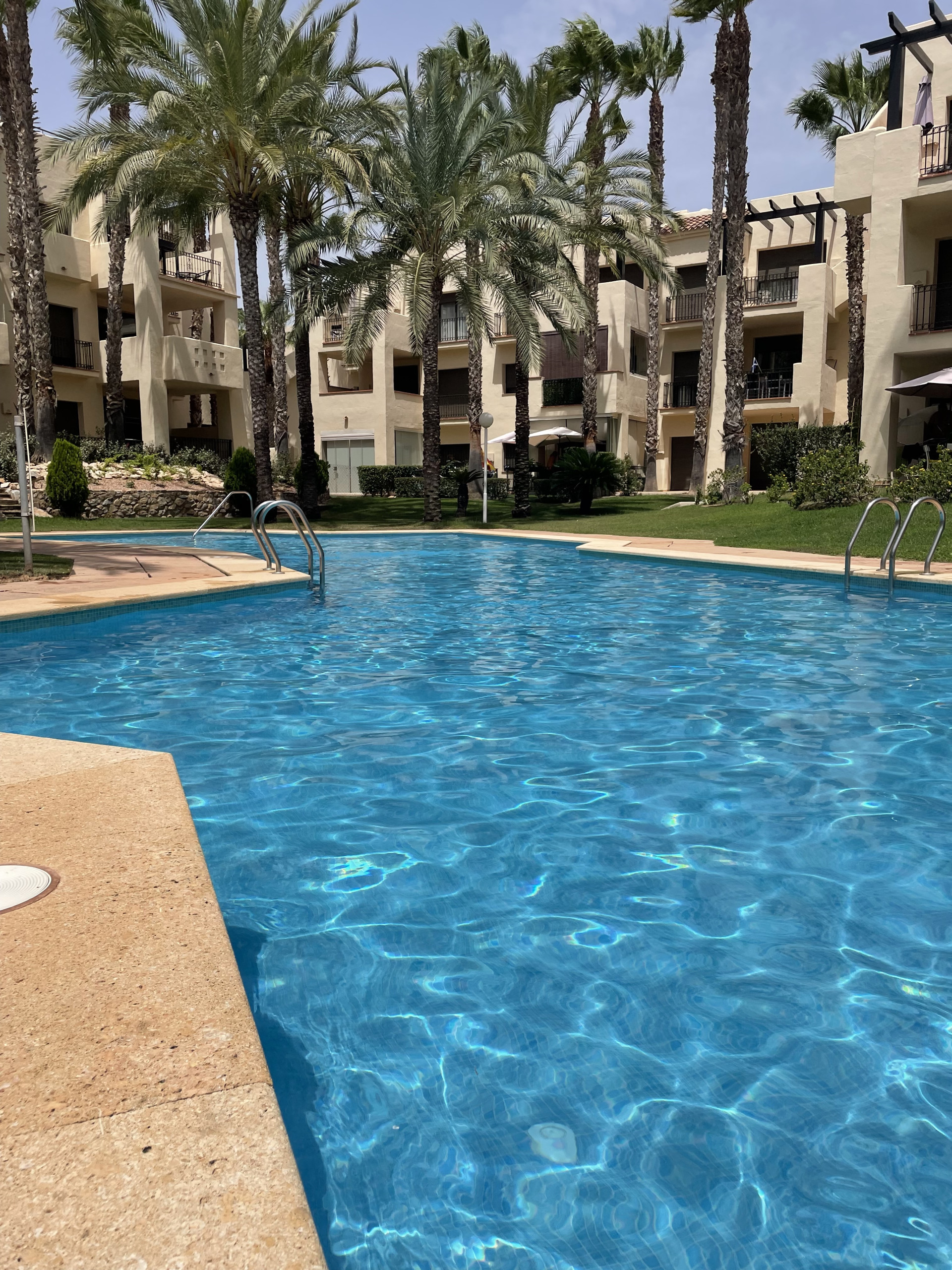 Kick back and relax in this calm, stylish apartment on the Roda Golf Beach Resort. Enjoy Al fresco dining on the terrace with followed by an evening drink on the solarium of this two bed, two bath penthouse apartment with views of the golf course. Easy access to 5 pools (1 minute from the front door), Dave Thomas designed golf course (1st tee 5 minute walk from the front door) and only a 5 minute drive to the beaches, bars and restaurants of Los Narejos and Los Alcázares! Bonus: Campbells Irish Pub & Restaurant 7 mins walk