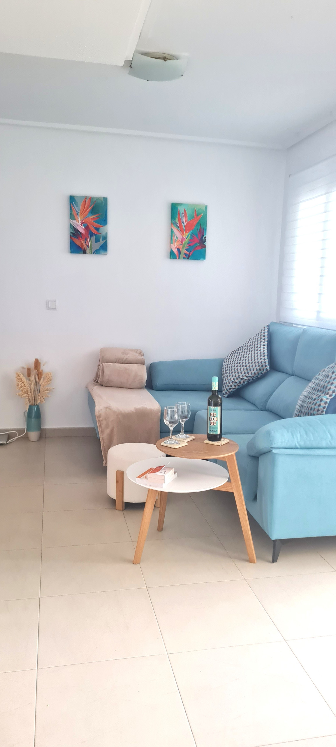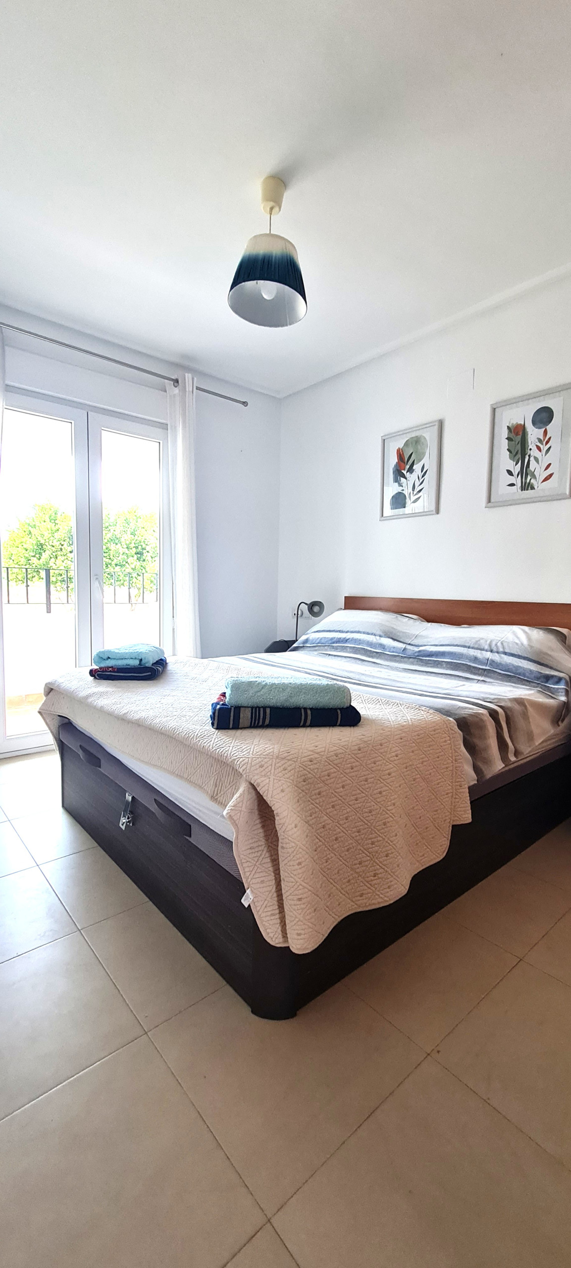 This Penthouse is beautifully decorated and overlooks the third hole of the Jack Nicolaus Golf course at Hacienda Riquelme. It has two bedrooms that open onto small front terraces, and there is a spacious open terrace that overlooks the golf course. It is a short walk to the on site driving range, golf shop, supermarket, restaurant and bar. Guests have access to all shared swimming pools on the resort, along with play areas and tennis courts with 24 hour security on the site