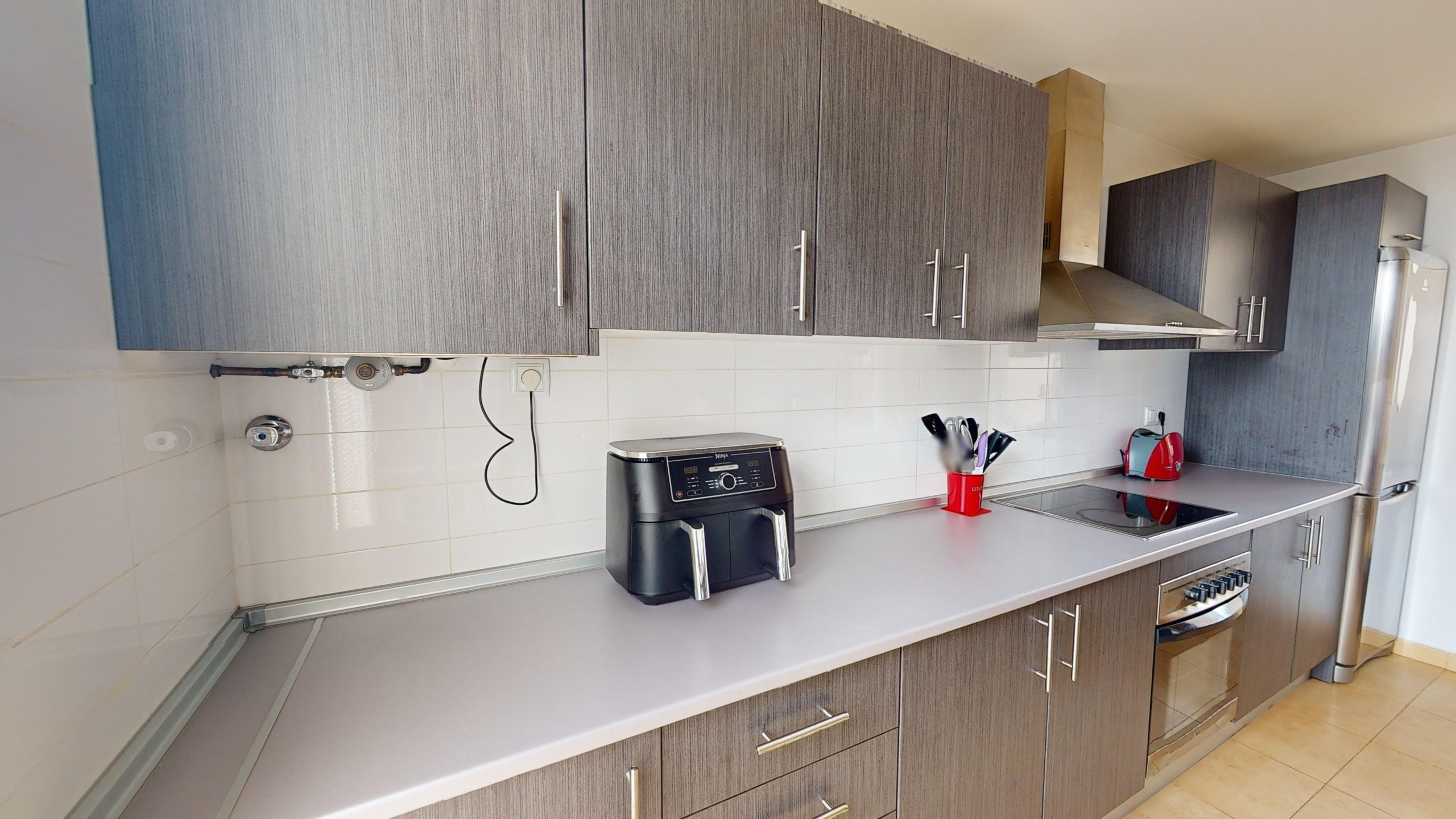 There is a fully equipped spacious kitchen including washing machine and dishwasher. It also has a Smart TV, internet (Wi-Fi), hair dryer, sofa bed and a travel cot and high chair.