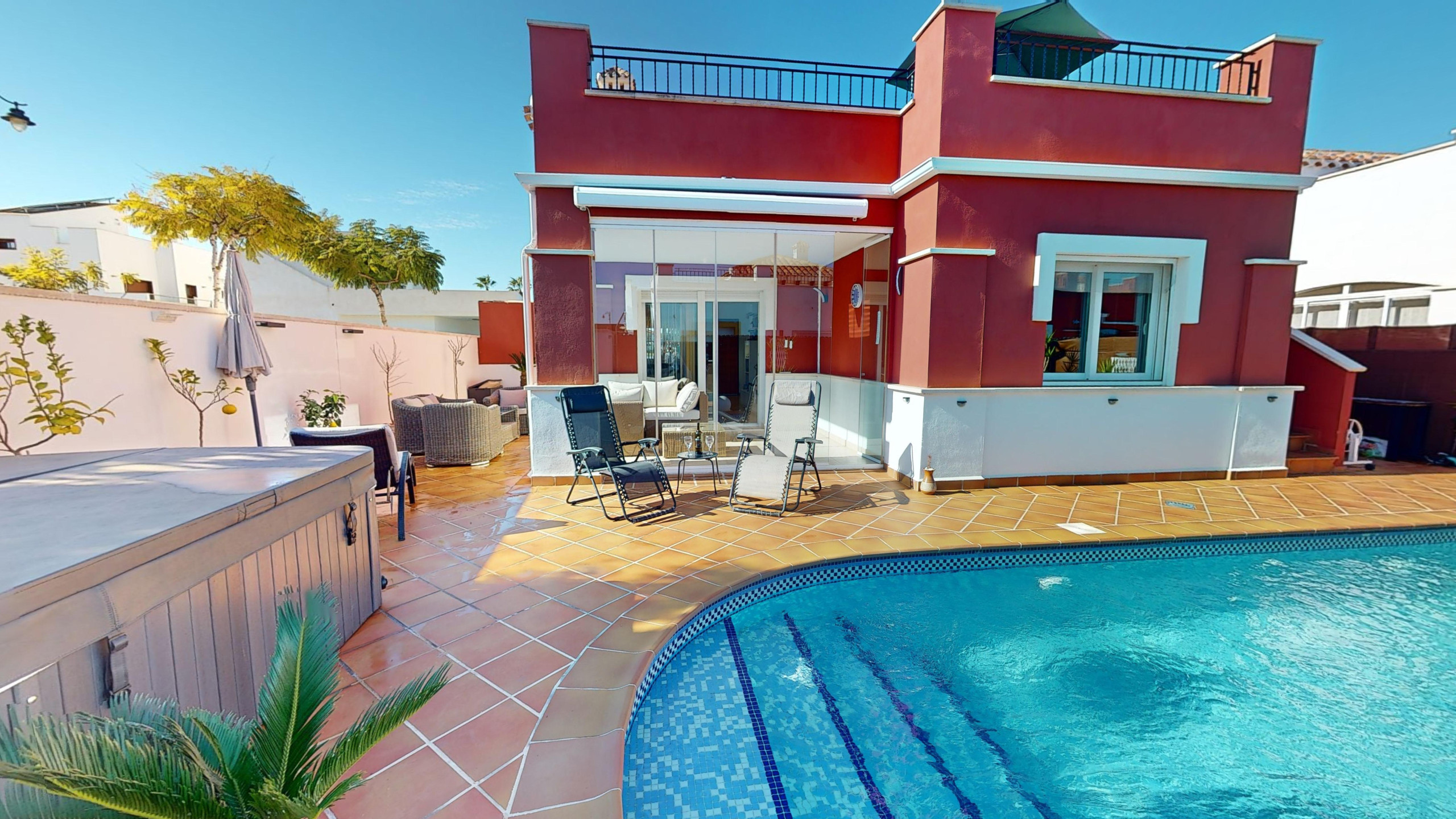 Fabulous 2 bed 2 bath villa with private *heated swimming pool and garden! Sun terrace with space to soak up the rays, is just what you need to relax and wind down! This property also has a hot tub to add to the benefits.
